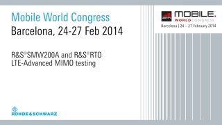 Auf dem GSMA Mobile World Congress 2014 in Barcelona präsentierte Rohde & Schwarz eine kompakte Testlösung für LTE-Advanced 4x4 MIMO. Die Lösung ermöglicht auf Basis des neuen High-Performance-Vektorsignalgenerators R&S®SMW200A und dem digitalen Oszilloskop R&S®RTO die MIMO-Signalerzeugung und Echtzeit-Kanalemulation (bis zu 4x4 oder 8x2) sowie die Synchronanalyse von Signalen mehrerer Sendeantennen. Dieser Messaufbau ist auch die Grundlage für Tests von 2x8-LTE-Basisstationen.