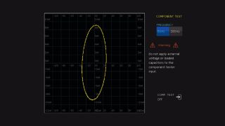 The R&S®RTC1000 oscilloscopes provide a built-in component tester. It consists of a signal generator that applies a sine-wave signal at 50 Hz or 200 Hz with a defined amplitude (max. 9 V) and limited current (max. 10 mA) to the DUT. In this mode, the oscilloscopes use the A/D converter to digitize the signals influenced by the component and display them as a current versus voltage signal.