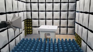 周波数レンジ1 GHz~18 GHzで放射性エミッション測定を行うためのEMIテストサイトは、受信信号に対する反射の影響を最小限に抑えるため、自由空間条件を満たす必要があります。実際に自由空間を実現するには、RF吸収材で完全に覆われたシールド筐体(全無響室、FAR)を使用します。