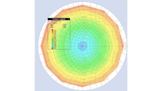 この図は、チューナー基準面での170 GHzでのFocus Dバンド(WR06)チューナーのインピーダンス・チューニング・レンジを表しています。チューナー基準面で16:1のVSWRを容易に達成できることがわかります。このチューナーのVSWR応答は、バンド全体を通じて非常にフラットになっています。