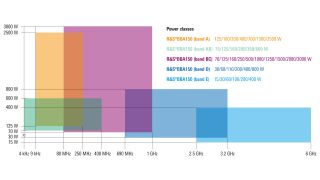 R&S®BBA150 広帯域アンプは、最先端の半導体マイクロ波アンプで、5つの周波数レンジ(9 kHz~250 MHz(A)、4 kHz~400 MHz(AB)、80 MHz~1 GHz(BC)、0.69 GHz~3.2 GHz(D)、2.5 GHz~6 GHz(E))、15 W~3000 Wの間のさまざまなパワークラスに対応します。周波数とパワーを柔軟に拡張/アップグレードできます。また、投資を無駄にすることなく、将来の新しい要件にも柔軟にシステムを適合させることができます。