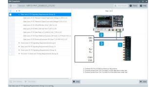 R&S®MIPI D-PHYコンプライアンステスト・オプションは、MIPIおよびUNH-IOLテスト仕様V 1.1/1.2およびV 2.1/2.5に準拠した自動テストソリューションを提供します。テストウィザードに図示される手順に従ってテストを実行できます。編集可能なテストレポートには、数値結果データやオシロスコープのスクリーンショットなどを含む結果が掲載されます。
