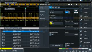 This software packages enables decoding of serial interfaces with 8b10b based protocols, as well as triggering and decoding of any Manchester and NRZ coded protocol, including Manchester violation detection. You can set up the protocol structure in seconds. For detailed analysis, results can be viewed as color-coded protocol elements in the waveform diagram and/or in a table. Errors are identified efficently and reliably.